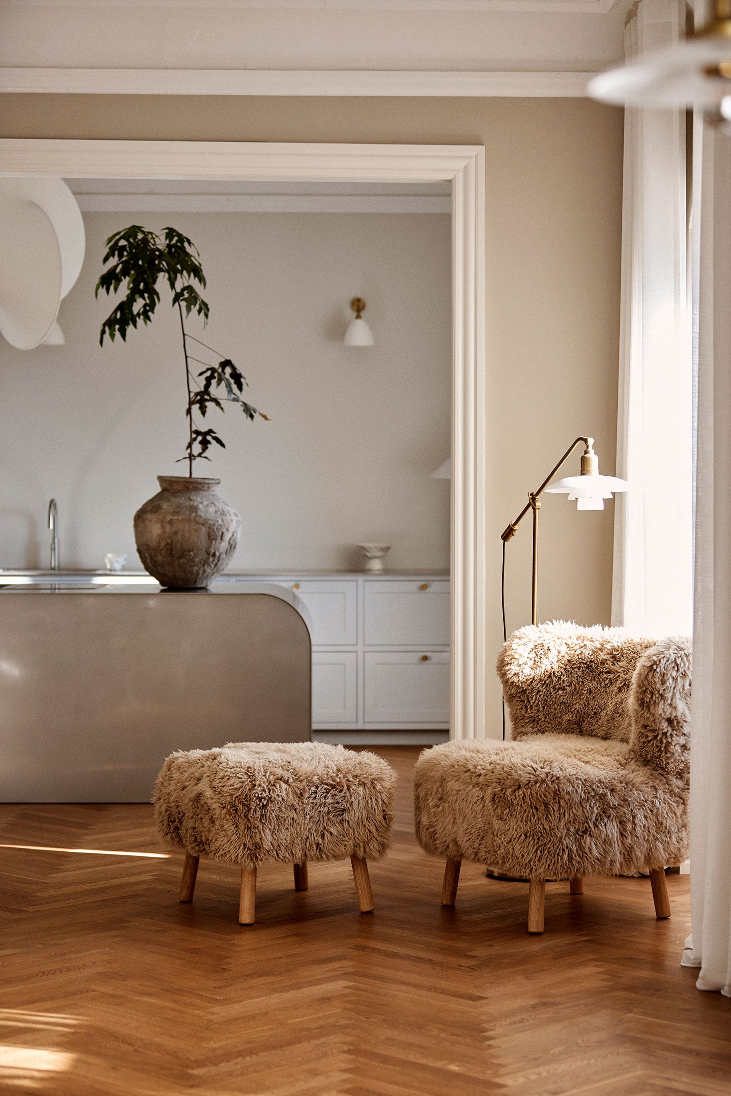 Bänk med fårskinn | Ek | Lång luggBänk med fårskinn | Ek | Lång lugg